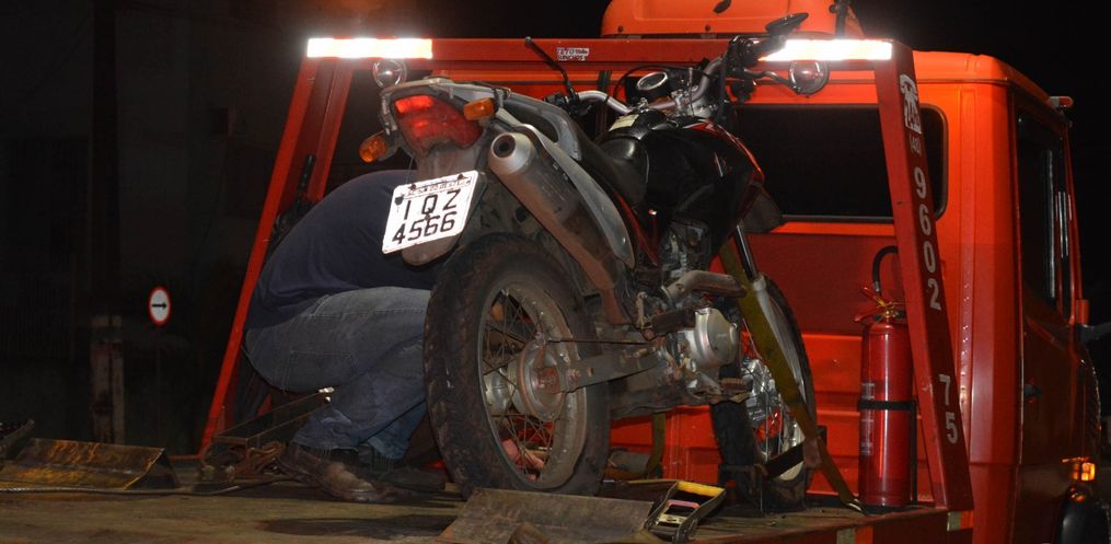 A PM fez o levantamento e a motocicleta foi recolhida ao pátio conveniado pois apresenta débitos de licenciamento.
