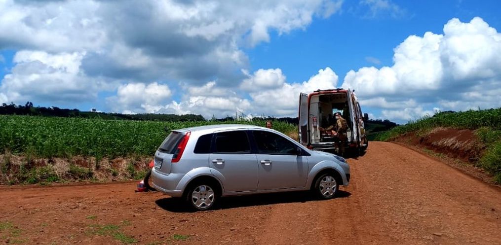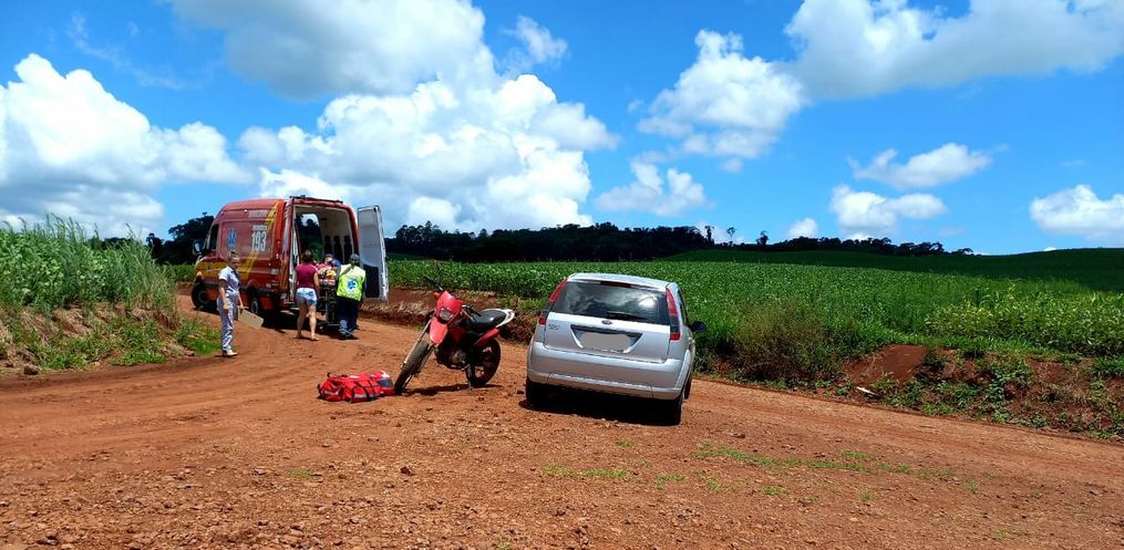 Um acidente de trânsito tipo colisão lateral entre carro e motocicleta deixou um homem ferido na tarde desta quarta-feira, 05, na Linha São Domingos, em São José do Cedro. A ocorrência foi registrada por volta das 13h30.
