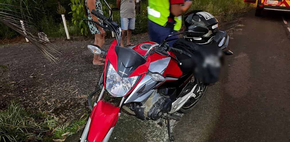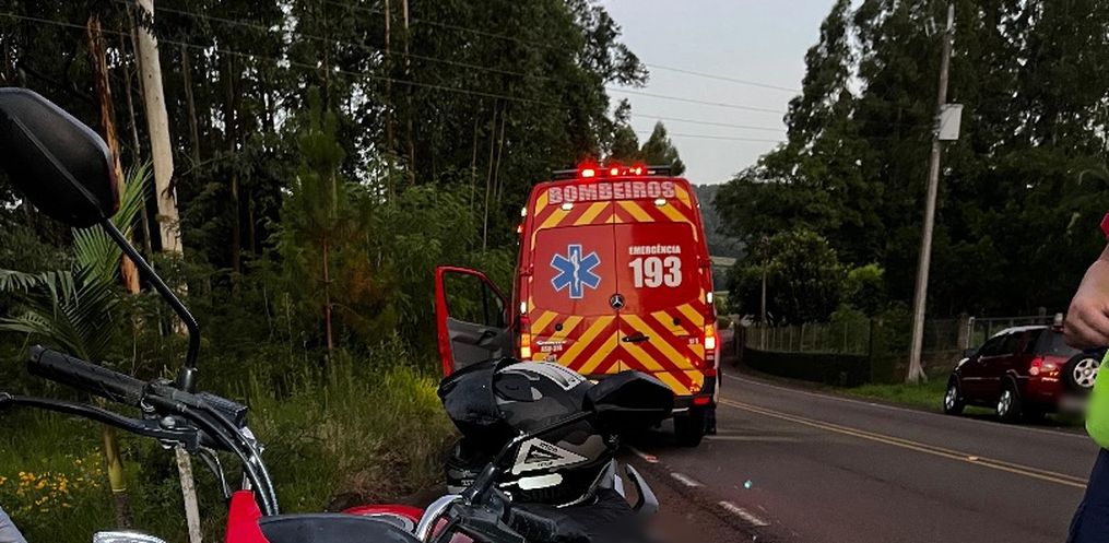 Uma motociclista sofreu uma queda após colidir contra um cachorro por volta das 19h30 dessa terça-feira, 10, na rodovia Leolino Baldissera, Linha Barra do Guamerim, interior de São Miguel do Oeste.