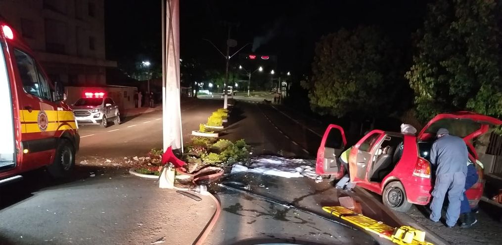 O condutor de um veículo Fiat Palio, com placas de Itapiranga, perdeu o controle da direção e colidiu em um poste de alta