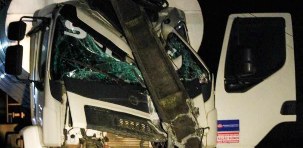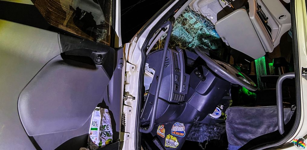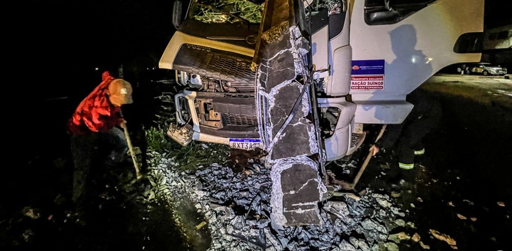 O condutor do caminhão ficou preso dentro do veículo e foi retirado pelo Corpo de Bombeiros. Ele foi levado ao Hospital Regional em estado estável.