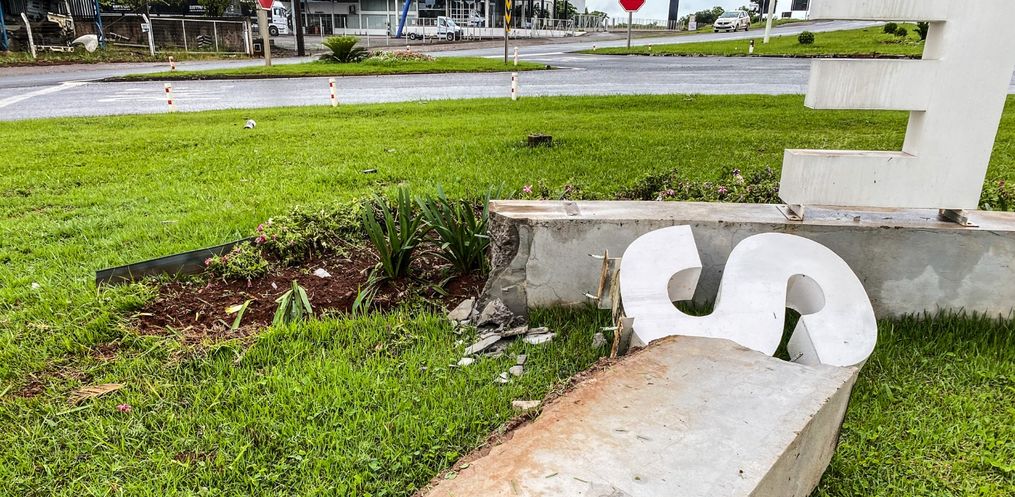 Um motorista invadiu o trevo de São Miguel do Oeste e danificou canteiros e até mesmo o letreiro com a identificação da cidade. A ocorrência foi registrada no começo da manhã deste sábado, 09, e envolveu um veículo Gol com placas de Descanso.