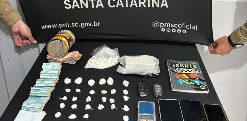 A Polícia Militar prendeu um homem de 40 anos suspeito de usar o carro de transporte por aplicativo para fazer entregas de drogas em São Miguel do Oeste. Ele foi flagrado com quase meio quilo de cocaína e R$ 28 mil em dinheiro, além de manter duas aves silvestres em cativeiro.