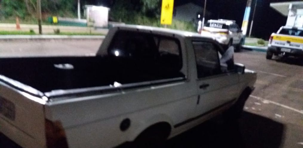 A guarnição policial militar rodoviária de Iporã do Oeste recebeu denúncia de usuários da rodovia indicando que uma Saveiro quadrada de cor branca estaria transitando em zigue e zague. Em rondas, o veículo foi localizado e abordado.