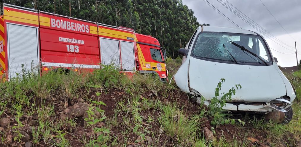 Na tarde desta quinta-feira, 7, por volta das 12h40, o Corpo de Bombeiros atendeu um acidente na BR-163, em Guaraciaba, envolvendo um GM Celta que saiu da pista e colidiu em barranco.