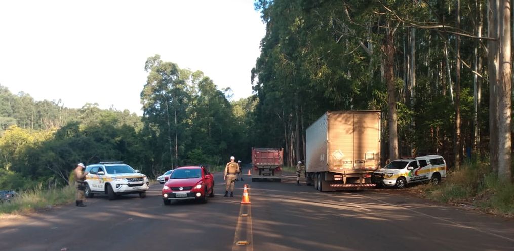 As guarnições da Polícia Militar Rodoviária de Iporã do Oeste e TOR realizavam na tarde desta quinta-feira, 12, fiscalização de trânsito na SC 283, no município de Palmitos, quando presenciaram um veículo Fiat/Palio, emplacado no município de Caibí, em atitude suspeita.