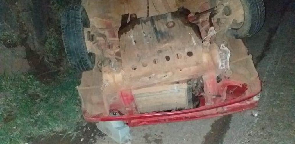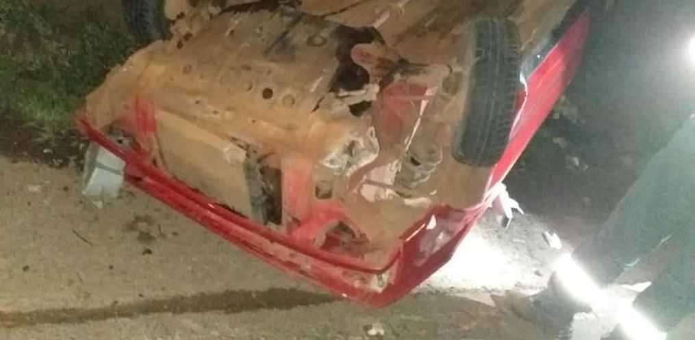 No local, o automóvel saiu da pista, colidiu contra um barranco de pedras e em seguida capotou.