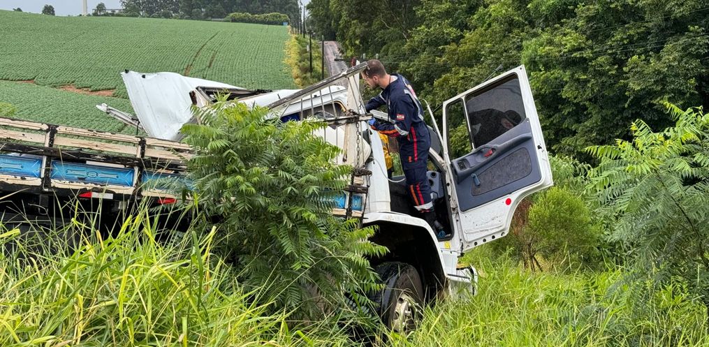 Uma colisão entre dois caminhões deixou uma pessoa ferida na manhã desta sexta-feira, 29, na SC 163. O acidente aconteceu por volta das 10 horas entre os municípios de São Miguel do Oeste e Descanso e envolveu um Mercedez Bens de Chapecó e um Volkswagen de São José do Cedro. O motorista do caminhão de Chapecó ficou preso nas ferragens. O Corpo de Bombeiros foi chamado e retirou o homem da cabine do veículo. Ele foi sofreu ferimentos graves nas pernas e foi levado para o Hospital Regional. O outro motorista saiu ileso.
