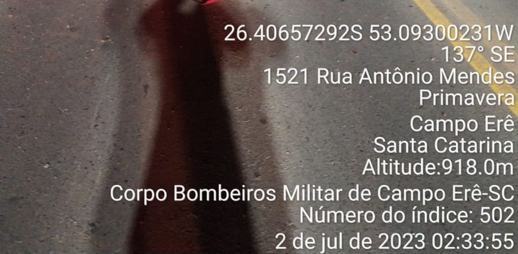 As 02h15 deste Domingo, 02, a guarnição do Corpo de Bombeiros de Campo Erê foi acionada para atender a uma ocorrência de acidente de trânsito. Foi na SC-160, próximo ao CTG, em Campo Erê-SC.
