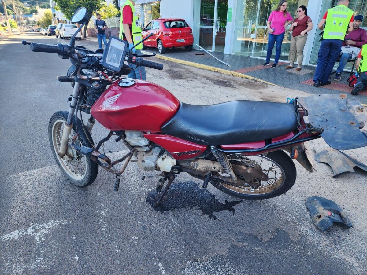 Um homem abandonou seu carro depois de se envolver em um acidente com uma moto no centro de Itapiranga na tarde desta sexta-feira, 10. A colisão ocorreu por volta das 16h30 na Rua do Comércio e envolveu um Gol, com placas de Iporã do Oeste, e uma CG 125.
