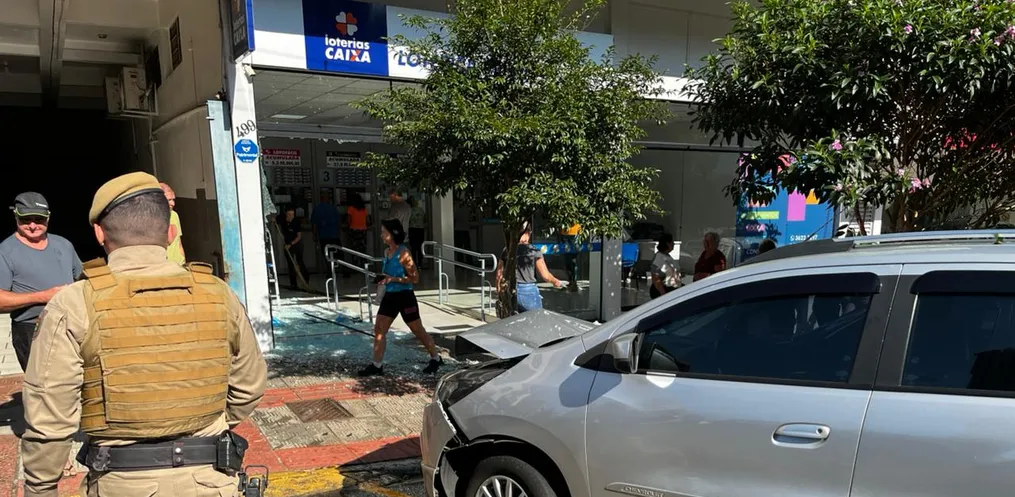 Segundo informações apuradas no local, a condutora subia a rua quando acabou colidindo contra a fachada de uma lotérica. O impacto quebrou parte da estrutura de vidro do estabelecimento.