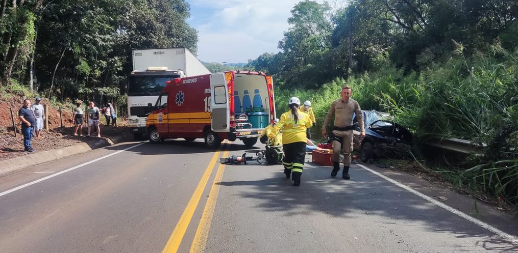 O Corpo de Bombeiros Militar de Quilombo foi acionado para atender o acidente envolvendo um Celta emplacado em Quilombo, e uma Carreta Scania de Chapecó.