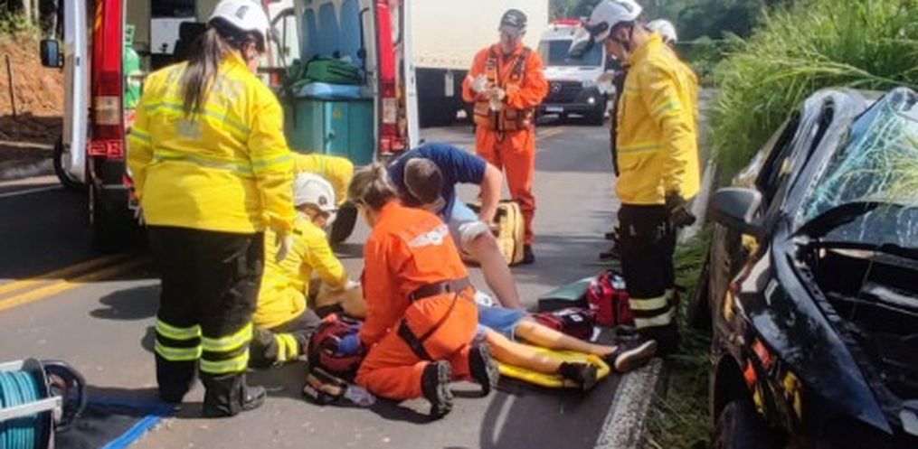 Informações iniciais davam conta de que havia um homem preso às ferragens e responsivo, contudo na chegada da guarnição foi encontrado o motorista do Celta de 23 anos já em parada cardiorrespiratória e com traumatismo craniano grave. A guarnição iniciou os procedimentos de desencarceramento e extração da vítima, e manobras de reanimação cardiopulmonar com uso de desfibrilador.