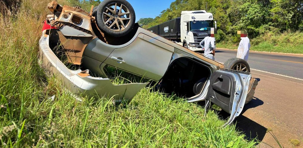 Uma saída de pista seguida de capotamento foi registrada na manhã deste sábado, 05, por volta das 10h00 na BR 163, entre São Miguel do Oeste e Guaraciaba.