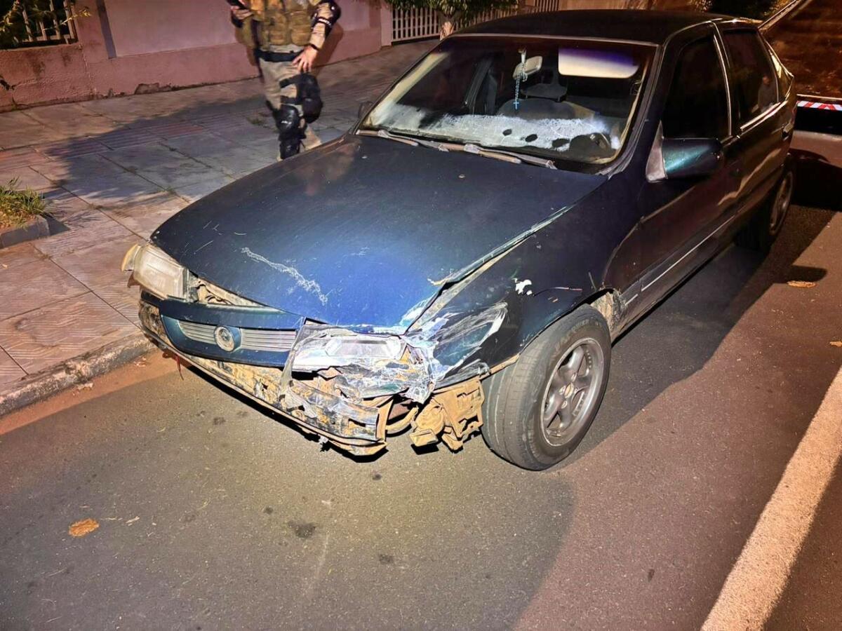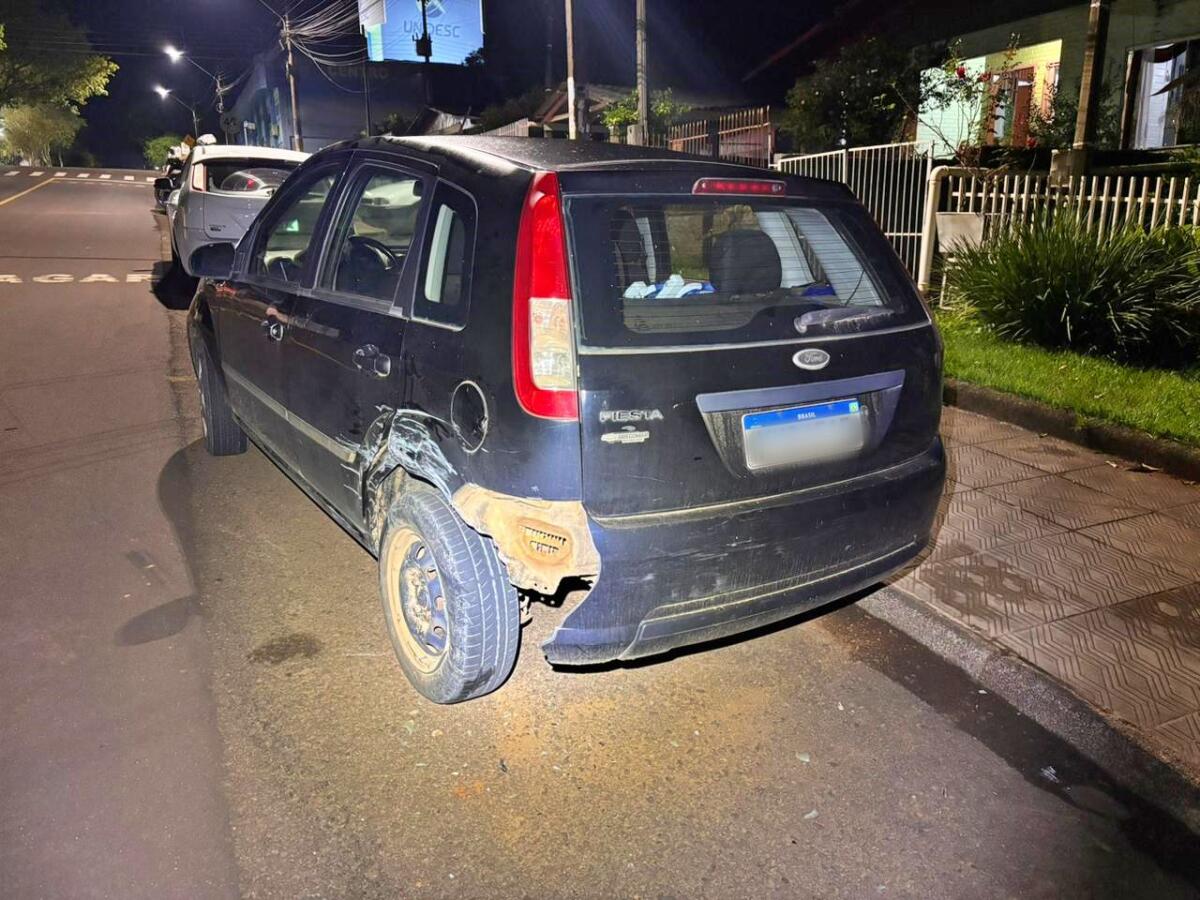 Poucos minutos depois, o mesmo carro foi visto trafegando pela Rua Barão do Rio Branco, onde acabou colidindo contra um Ford Fiesta que estava estacionado.