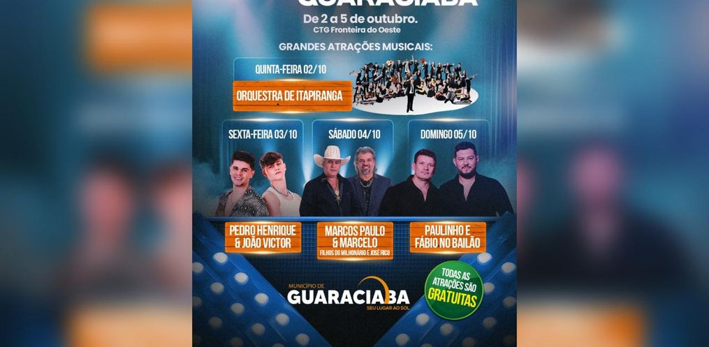 A primeira edição da feira Movimenta Guaraciaba começa em duas semanas. O evento, organizado pela administração municipal, será realizado entre os dias 2 e 5 de outubro, no espaço do CTG, e contará com 150 empresas expositoras de Guaraciaba.