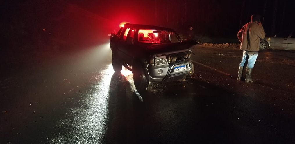No início da noite desta terça, 13, a Policia Militar Rodoviária, registrou a colisão frontal entre dois veículos, sendo uma camionete Mitsubishi L200 de Anchieta e um Corsa com placas de Palma Sola.
