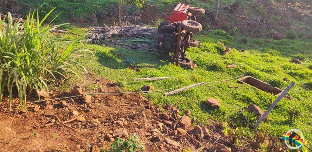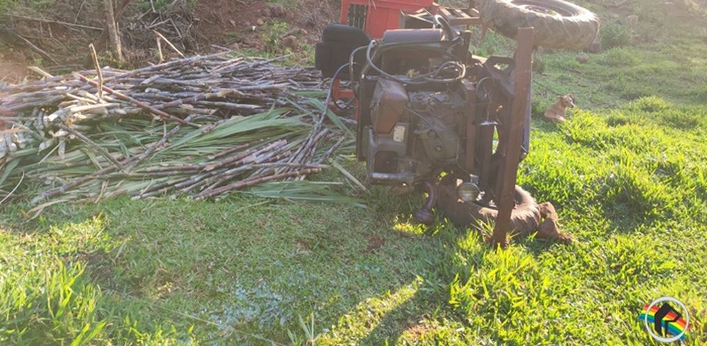 Conforme as informações obtidas pela reportagem da Rede Peperi no local, uma carreta agrícola, carregada de cana-de-açúcar, teria ficado sem freios e em seguida capotou.