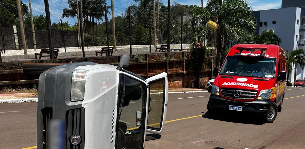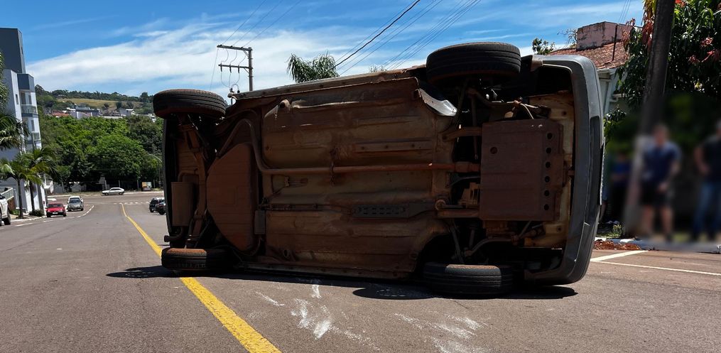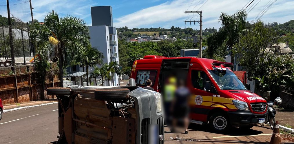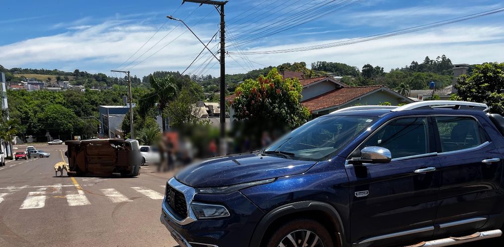 Uma mulher ficou ferida em uma colisão entre dois veículos seguida de capotamento por volta das 11h40 dessa quinta-feira, 17, no cruzamento da Avenida Ladislava Poleto com a Rua Ludovico Wronski, o centro de Descanso.