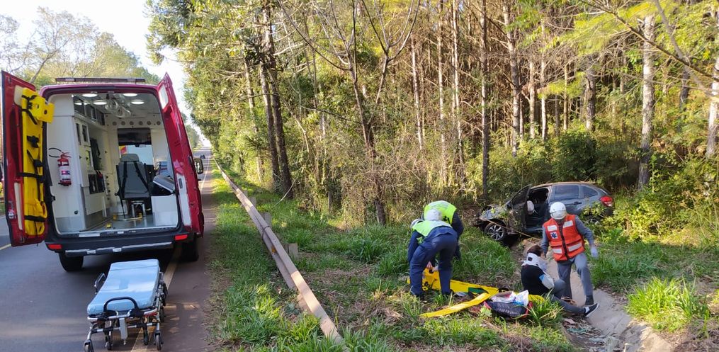 Quando os socorristas chegaram ao local, a condutora estava sentada fora do veículo. Após procedimentos de Atendimento Pré-Hospitalar, foi verificado que a vítima estava consciente orientada e responsiva à comandos, com sinais vitais estáveis. Ela ainda tinha suspeita de fratura em um dos braços, além de diversas escoriações pelo corpo. Ela foi socorrida, imobilizada e levada para a UPA para cuidados médicos.