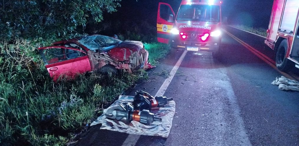 O Corpo de Bombeiros de São Lourenço do Oeste atendeu, por volta das 3h30 desta quinta-feira (20), uma saída de pista seguida de capotamento na PR-158, no município de Vitorino (PR).