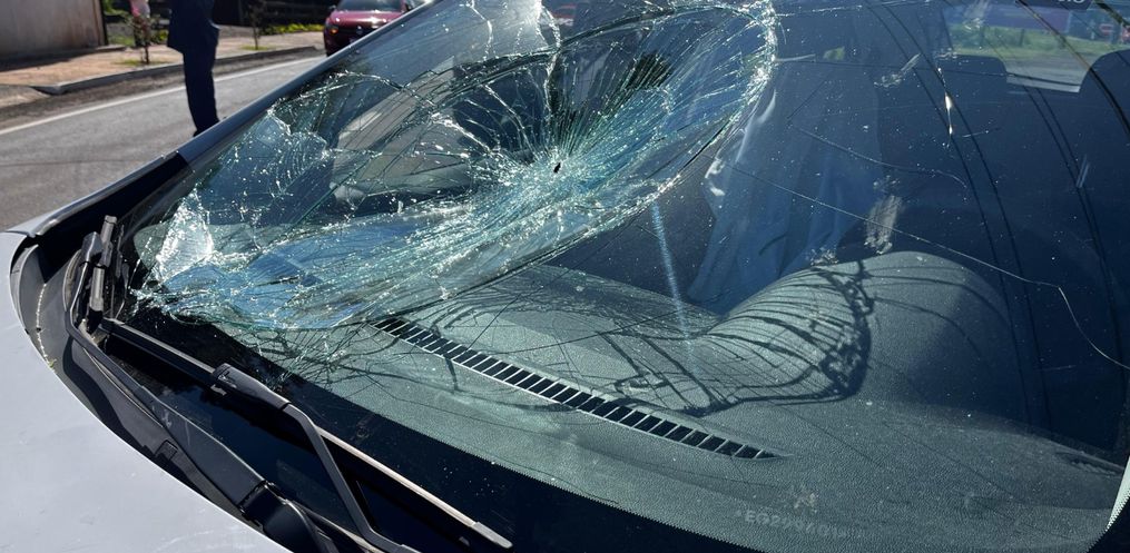 Uma mulher foi parar em cima do capô de um carro após um acidente na Willy Barth, Bairro Progresso, em São Miguel do Oeste. A colisão foi por volta das 13h10 dessa quarta-feira, 8.