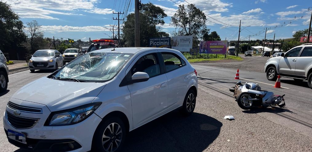 Conforme as informações apuradas no local, uma motocicleta seguia pela Avenida, sentido a cidade alta, enquanto o veículo saía da Rua José Bernardi em direção ao trevo de acesso ao município.