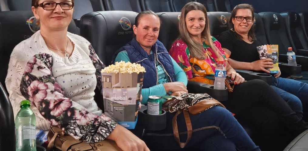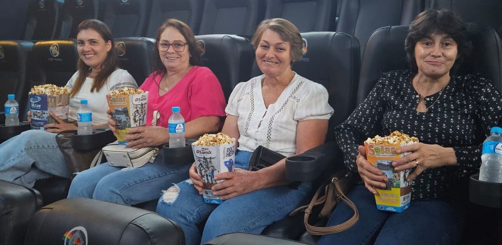 Conforme a Diretora de Educação Juliana Kern, a programação "Cinema Mulher" aconteceu durante a tarde da terça-feira às 13h e às 18h, onde as inscritas foram levadas até o Cine Peperi em São Miguel do Oeste/SC para assistir à sessões do filme "Tire Cinco Cartas", uma comédia brasileira com a atriz Lília Cabral que está em cartaz.