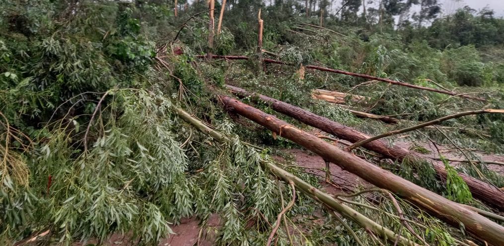 Um tornado atingiu o município de Santa Helena na tarde desta quinta-feira, por volta das 15h50, causando alguns danos materiais. Nas proximidades do pórtico de entrada do município e na Linha Aparecida, vários eucaliptos foram arrancados e retorcidos pela força dos ventos.