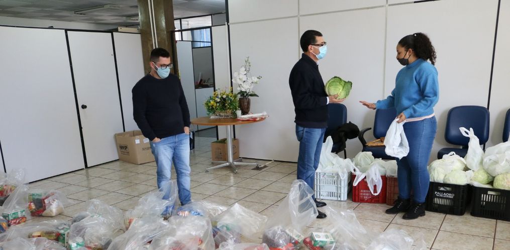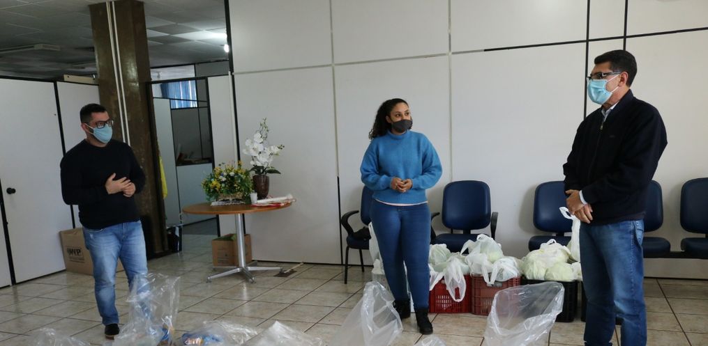 Nesta manhã de quinta-feira, 16, o Prefeito Plinio de Castro esteve, juntamente com o Secretário Municipal de Educação Mauro Weber e a Nutricionista Zelma Lima, acompanhando separação dos itens e montagem dos kits que serão entregues às famílias dos alunos do município.