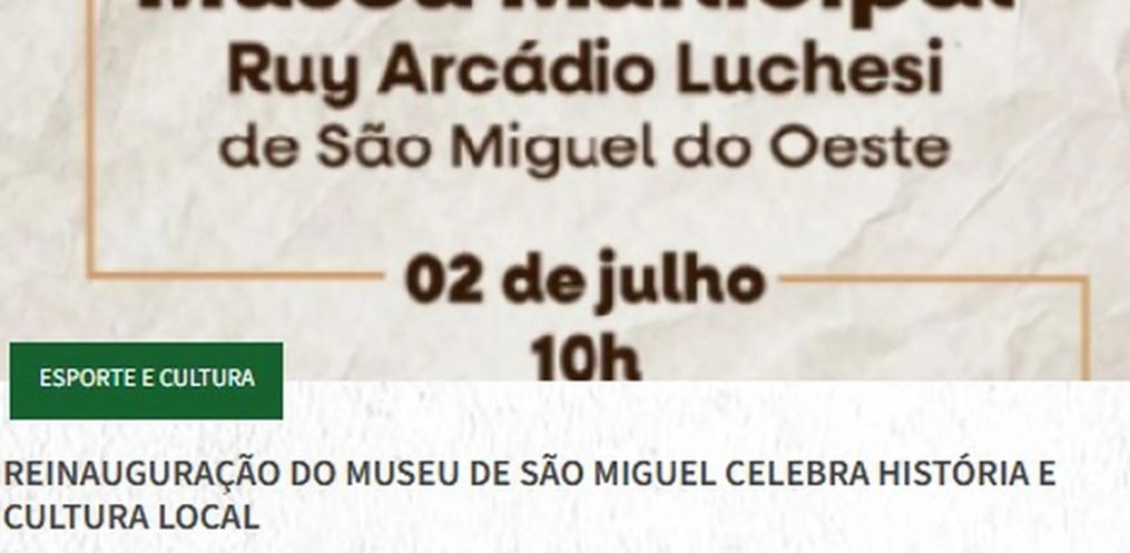 Após meses de reformas, o Museu Municipal Ruy Arcádio Luchesi, em São Miguel do Oeste, será oficialmente reinaugurado nesta quarta-feira, 2, às 10h. O evento marca a entrega de um espaço revitalizado, com melhorias na estrutura, acessibilidade e na forma como o acervo é apresentado ao público.