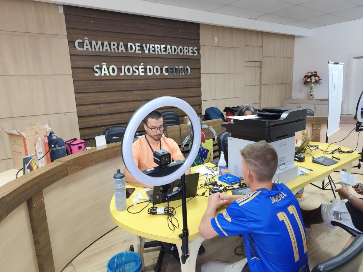 A Justiça Eleitoral está promovendo um mutirão de atendimento em São José do Cedro para facilitar o acesso da população aos serviços eleitorais. A ação ocorre das 8h30 às 16h30, com atendimentos rápidos que duram, em média, até 10 minutos por eleitor.