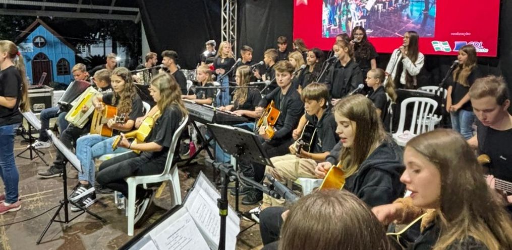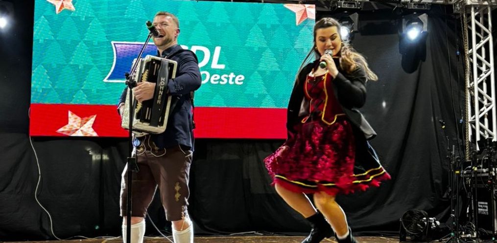 A noite iniciou com a apresentação da Orquestra de Iporã, que emocionou o público com um repertório impecável, unindo tradição e espírito natalino. Em seguida, a dupla Karine e Felipe encantou os presentes com músicas tradicionais alemãs, trazendo um toque especial de cultura e alegria ao evento.