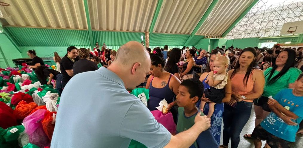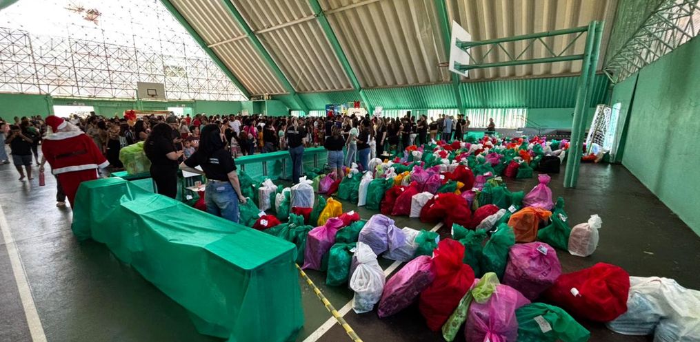 Os presentes foram arrecadados por meio das tradicionais árvores de Natal solidárias, instaladas em lojas do município. Nelas, as cartinhas escritas pelas crianças ficam disponíveis para adoção, com pedidos variados, como bonecas, bolas, camisetas, carrinhos e outros brinquedos. Após escolher uma cartinha, o padrinho ou madrinha retorna ao local para entregar o presente solicitado.