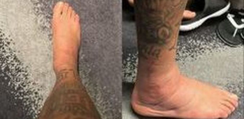 Nas fotos, é possível perceber que o tornozelo ainda está muito inchado. Neymar deixou o gramado do Estádio Lusail, palco do jogo contra a Sérvia, mancando.