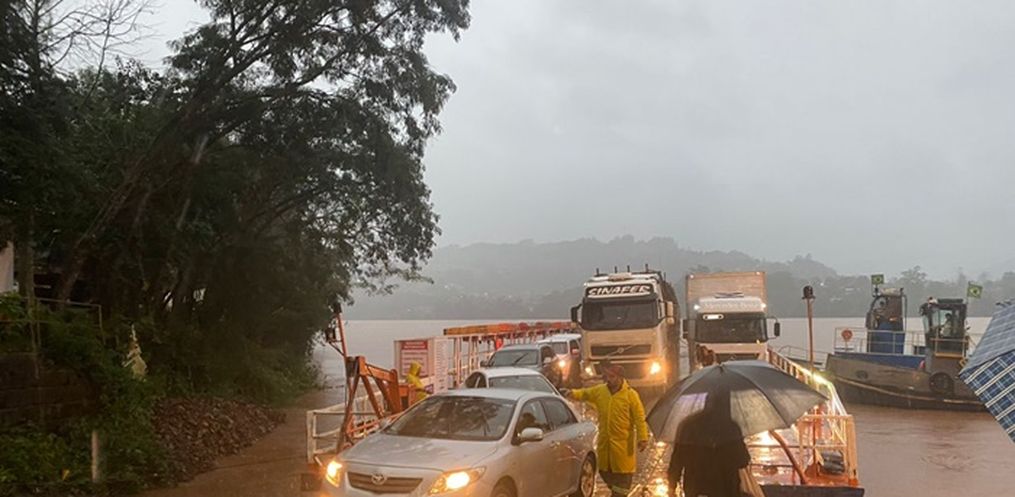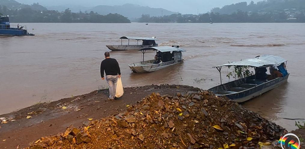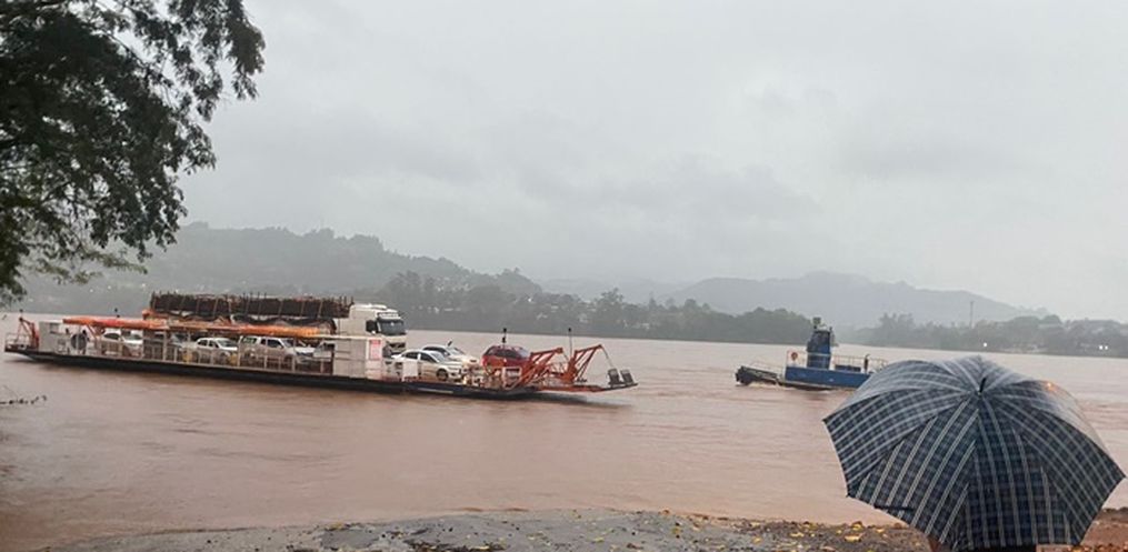 O nível do Rio Uruguai chegou a 7,60 metros acima do normal às 19 horas desta quarta-feira, 12, e a Barca Aliança, que faz a travessia de Itapiranga/SC a Barra do Guarita/RS, vai interromper a travessia nesta noite, por questões de segurança.