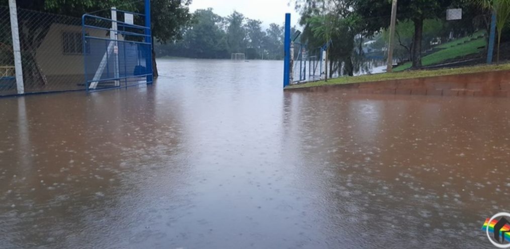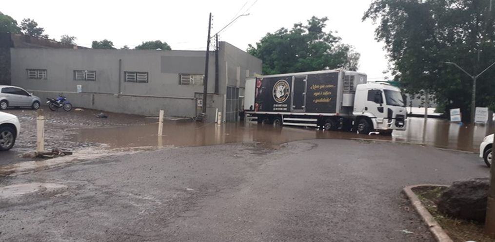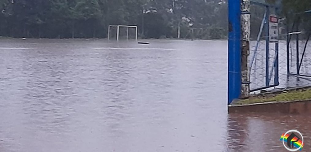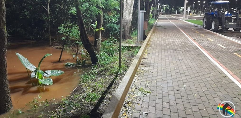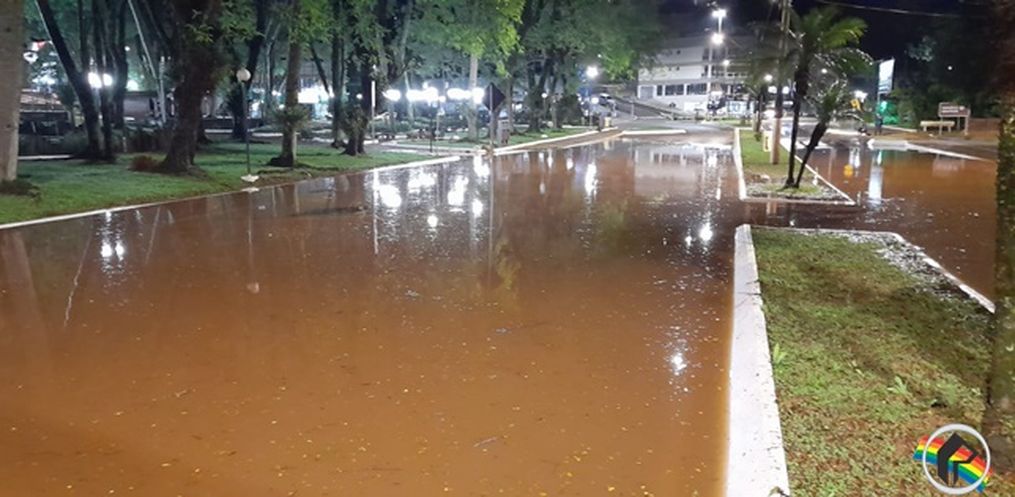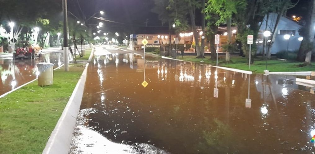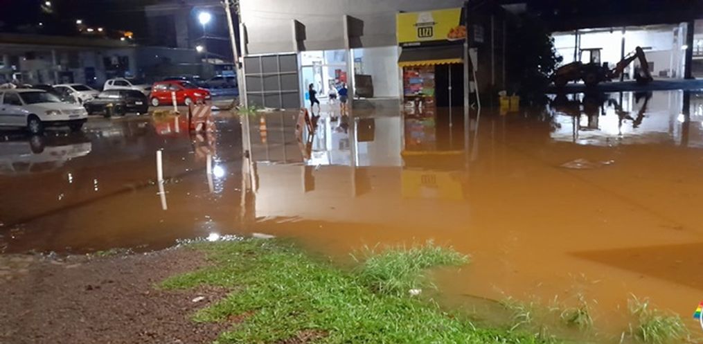A Avenida Uruguai, em Itapiranga, está interditada em ambos os sentidos por ter água na pista.