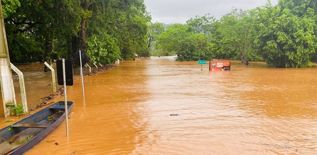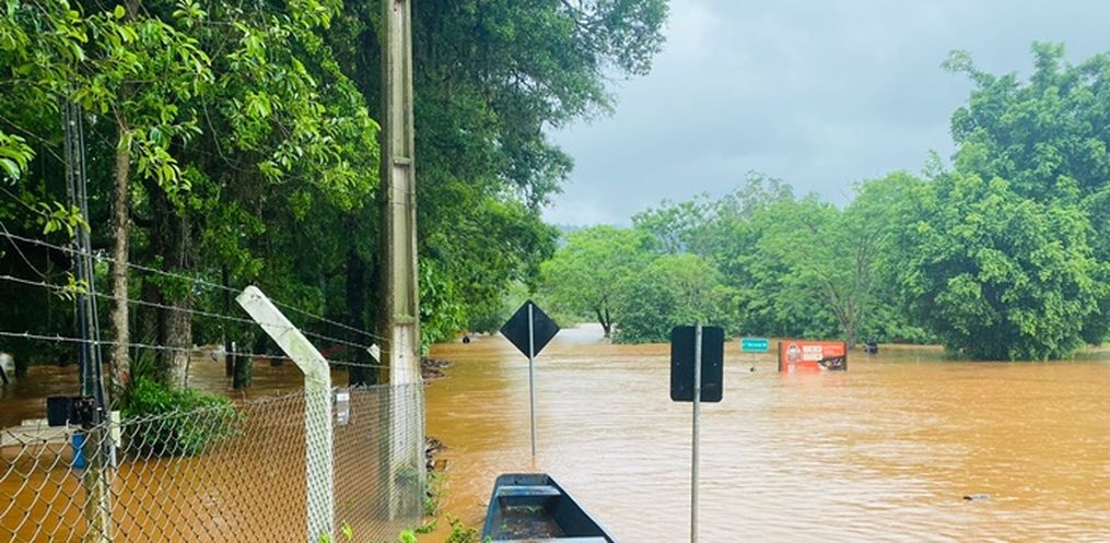 A enchente causou alagamentos interditando mais de 10 pontes no interior do município. A água também atingiu a Avenida Uruguai no centro da cidade.