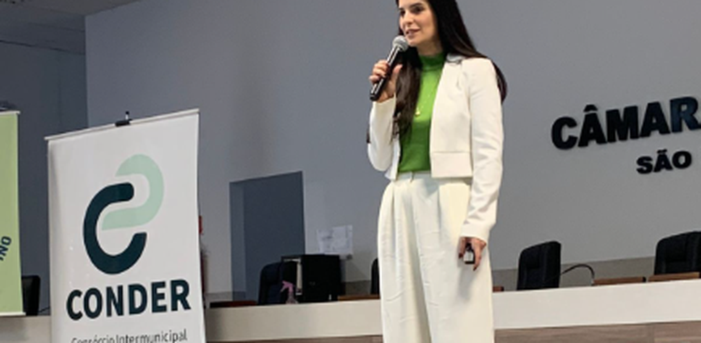 A Promotora de Justiça Karen Damian Pacheco Pinto, da 3ª Promotoria de Justiça de São Miguel do Oeste, realizou palestra, na segunda-feira (5/6), Dia Mundial do Meio Ambiente, sobre algumas das ações do Ministério Público na área de gestão de resíduos sólidos, as atribuições municipais e a responsabilidade de cada ente na logística reversa. O Seminário do Meio Ambiente 2023, que foi organizado pelo Consórcio Intermunicipal de Desenvolvimento Regional (Conder) e contou com o apoio de diversos órgãos, reuniu representantes dos municípios da região do Extremo Oeste, profissionais da área, acadêmicos e população em geral.