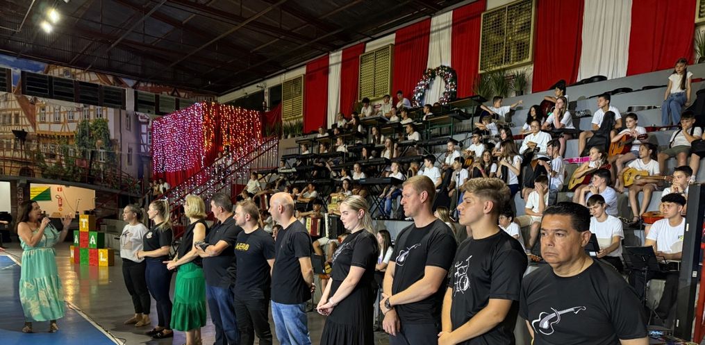 Um grande público de familiares dos alunos acompanhou as apresentações na noite deste domingo. Foram realizadas exibições de música, canto e encenação.