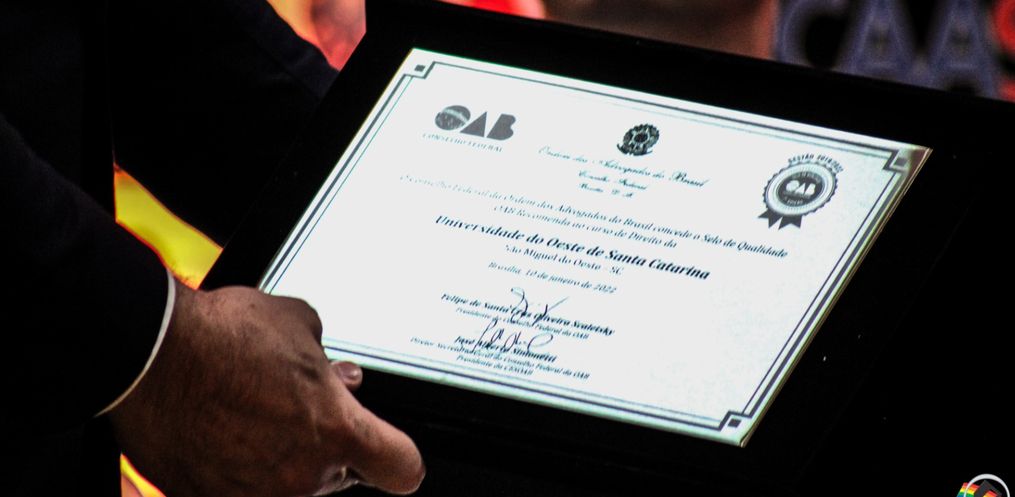 Durante a cerimônia de posse da gestão, também foi concedido, pela federação nacional, o selo “OAB Recomenda” ao curso de direito da UNOESC de São Miguel do Oeste em virtude do ótimo desempenho dos alunos no exame de ordem.