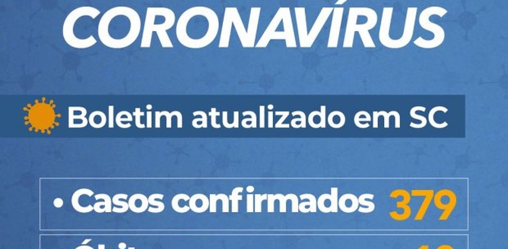 Santa Catarina registra 379 casos confirmados de Covid-19 neste domingo, 05. O número representa um aumento 6,4% em relação ao último boletim. Desde o começo da pandemia, foram confirmadas 10 mortes no estado por conta da doença.