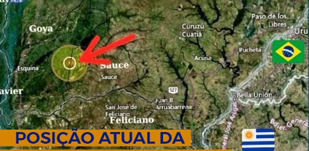A nuvem se encontra entre as cidades de Sauce e Esquina, na Província de Corrientes. De acordo com o grupo de trabalho formado por diversas agências, a previsão é que a nuvem continue se deslocando para Oeste em direção a Província de Santa Fé, também na Argentina.