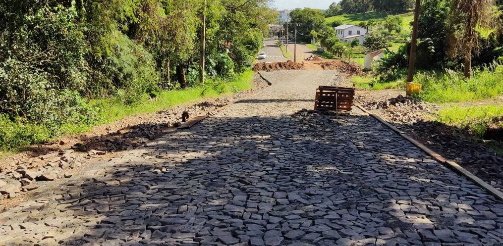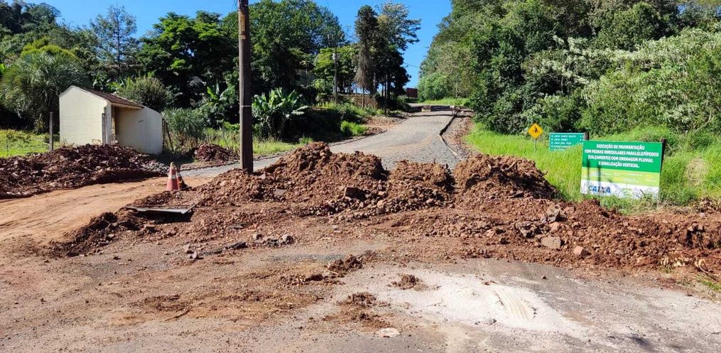 Foi preciso realizar a detonação das rochas que aconteceu em dois locais e foi necessária para que ocorresse a pavimentação com pedras irregulares, também iniciada pela empresa vencedora da licitação.