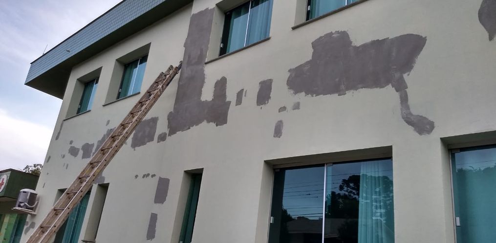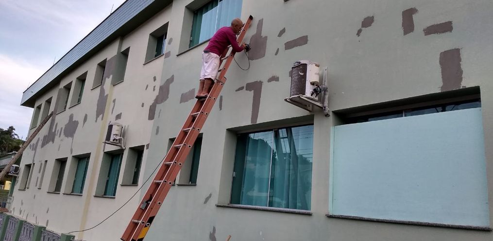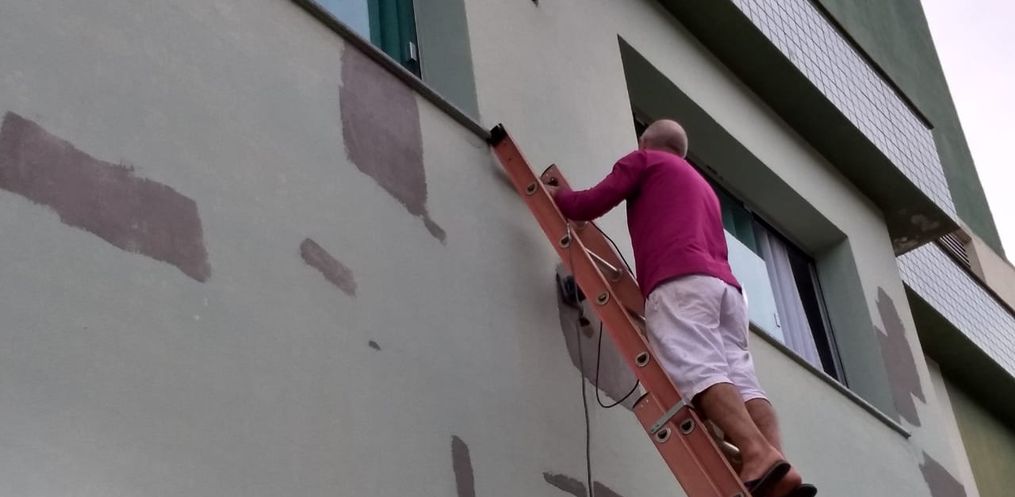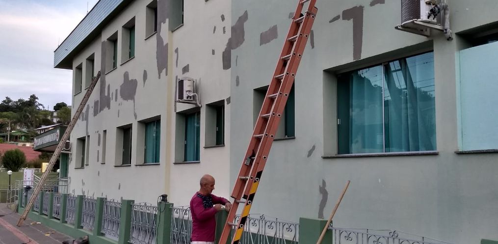 Ela revela que também houve colocação de calhas, cantoneiras e reparo em uma laje que estava com problema de estrutura. Também havia fissuras numa parece que foi consertada para evitar infiltração e desgaste.