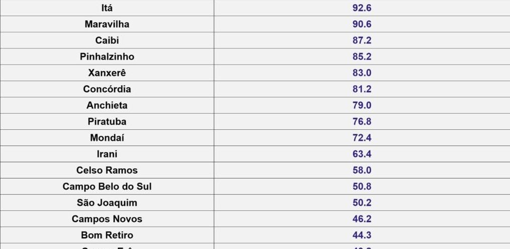 O Oeste de Santa Catarina sofreu com a chuva intensa durante a quinta-feira (19) e a madrugada desta sexta (20). Xaxim foi a cidade que mais registrou precipitação no Estado — 126,6 milímetros em 24 horas, segundo a Defesa Civil Estadual. Em seguida vem Chapecó, onde choveu 102 milímetros em 24h. Itá, Maravilha e Caibi também registraram altos volumes.