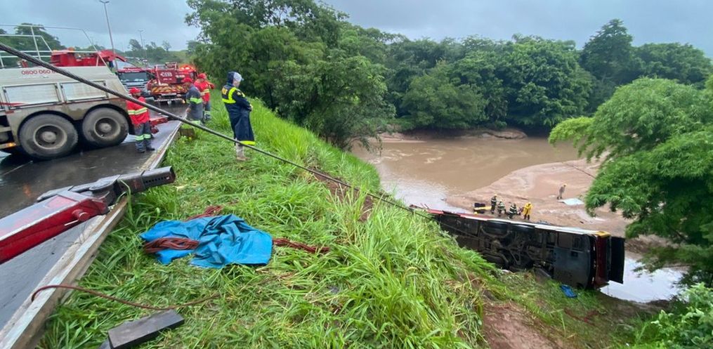 A Polícia Rodoviária Federal informou que o ônibus saiu de São Paulo, capital, e seguia para Brasília. Chovia no momento do acidente. O trânsito ainda segue interditado.