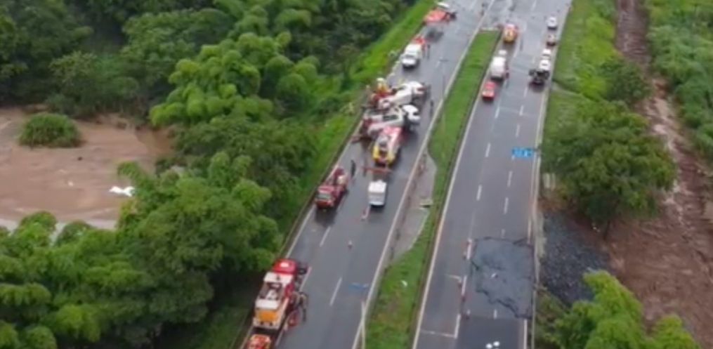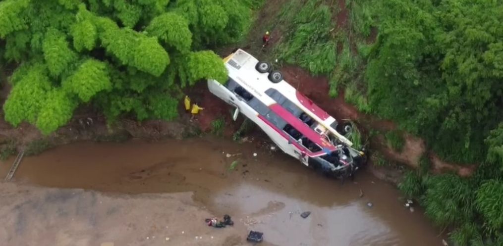 Um ônibus bateu em um carro e um caminhão, caiu em um córrego na BR-153 e deixou cinco mortos e 40 feridos na madrugada desta sexta-feira, 24, em Aparecida de Goiânia, Região Metropolitana da capital. O acidente aconteceu no desvio próximo à cratera que se abriu na rodovia. Todos os sobreviventes já foram resgatados.