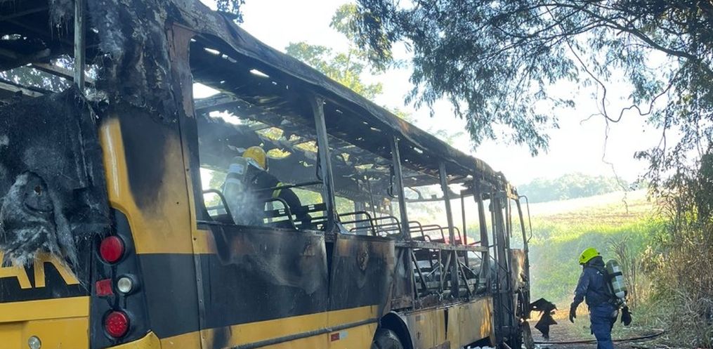 Diante do princípio de incêndio, os ocupantes tentaram combater as chamas com o uso do extintor de incêndio, mas não obtiveram sucesso e o fogo se espalhou, tomando conta de todo o ônibus.