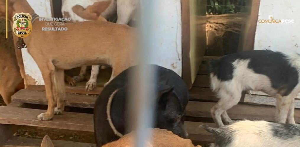 Na última quinta-feira, 11, uma operação da Polícia Civil (PCSC) resgatou 14 cachorros vítimas de maus-tratos em uma propriedade no interior do município de Tigrinhos.
